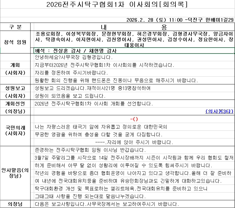 [공지] 전주시탁구협회 위원회 발대식